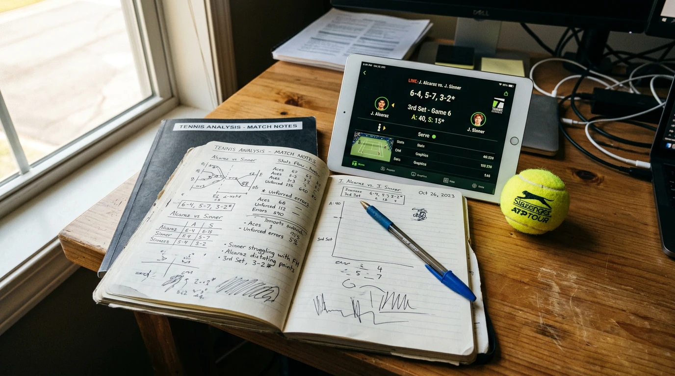 El momentum en tenis es medible. Tres indicadores que uso en vivo: el porcentaje de primeros servicios entrantes en los últimos cuatro juegos de servicio, la cantidad de errores no forzados acumulados desde el último cambio de lado, y el lenguaje corporal en los desplazamientos laterales. Los dos primeros los saco de la estadística en directo. El tercero exige ver el partido, y marca la diferencia entre un análisis bueno y uno excelente.